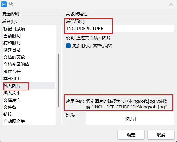 ‘显示的图片的域代码如下所示