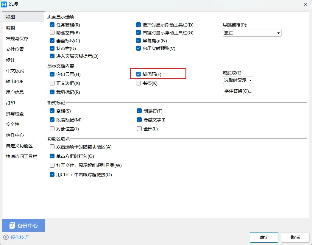 检查选项-视图设置,勾选了域代码显示,显示图片的域代码