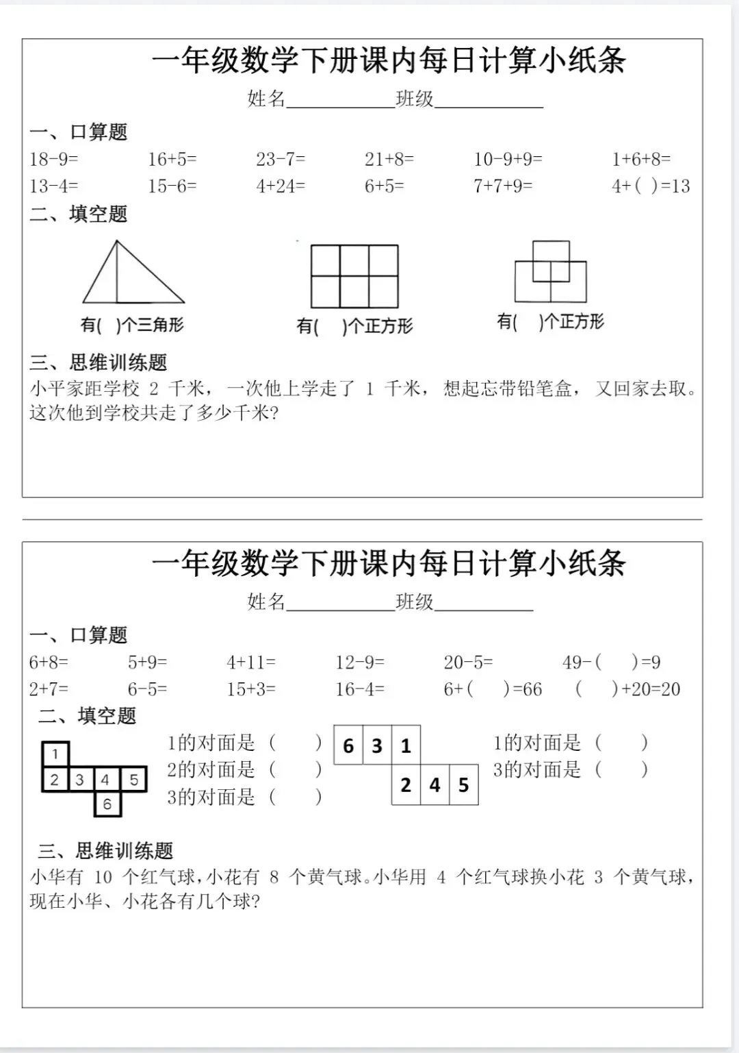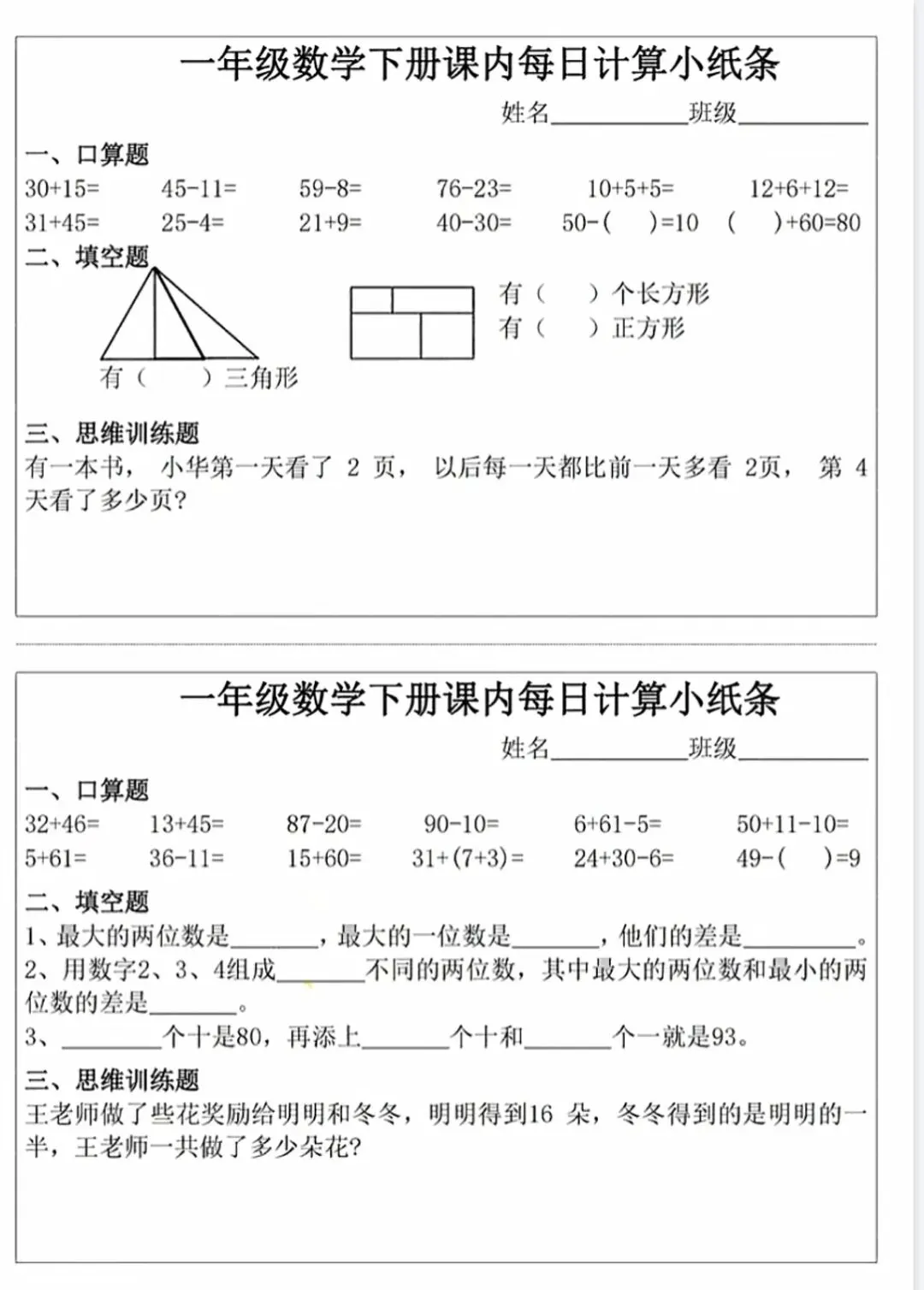 🏅一年级下册数学课内每日计算小纸条.pdf