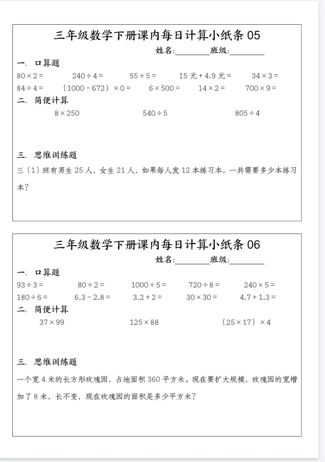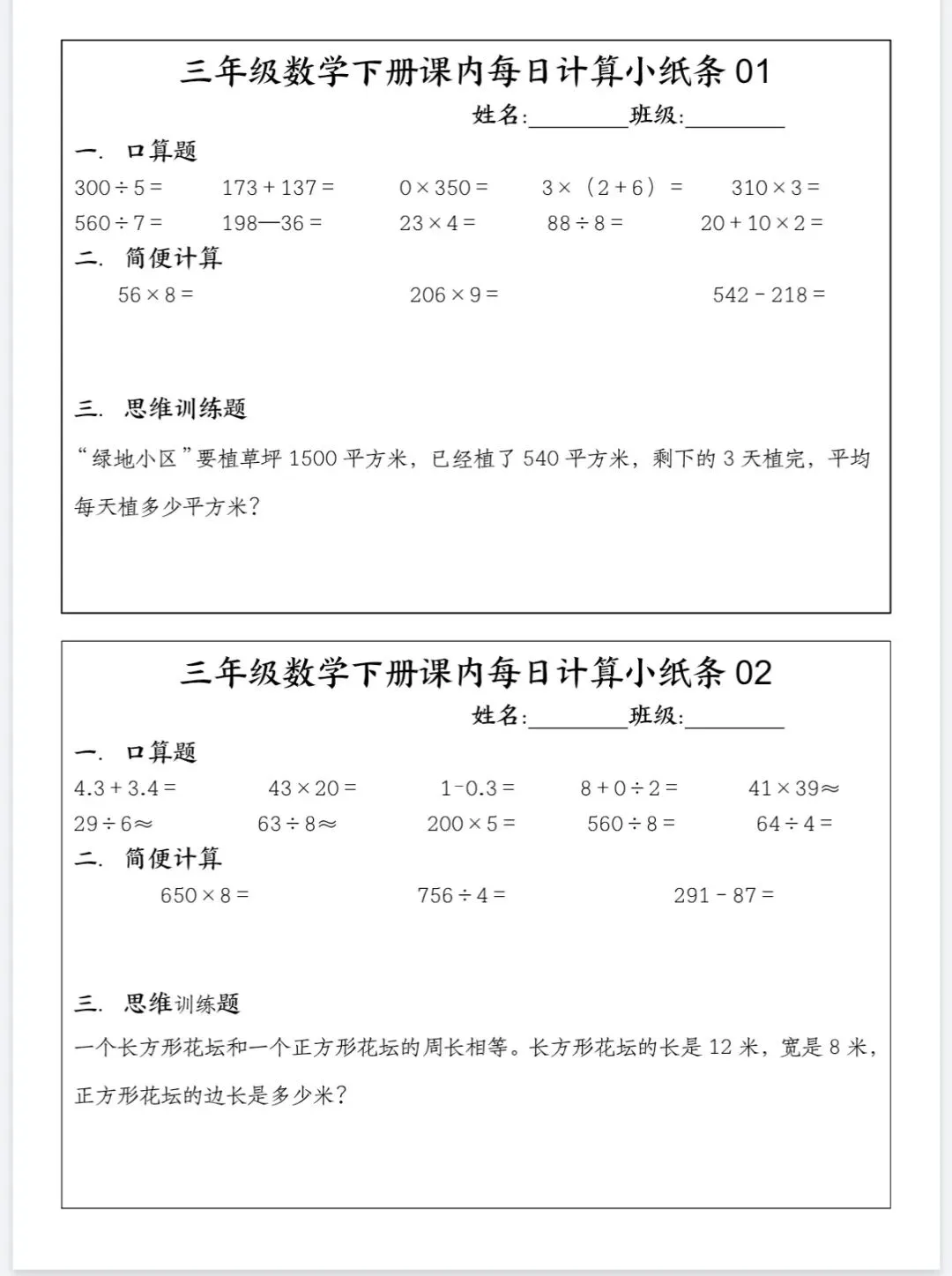 🏅三年级下册数学课内每日计算小纸条.pdf