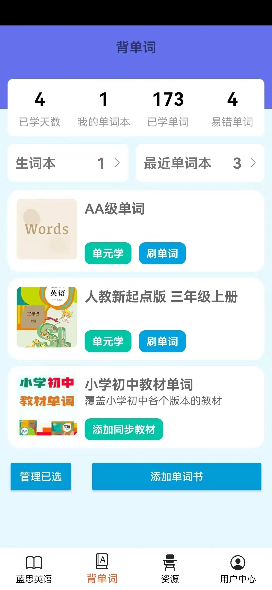 刷单词,更不在话下。你可以自己选择想要学习的资源添加,然后再去刷。