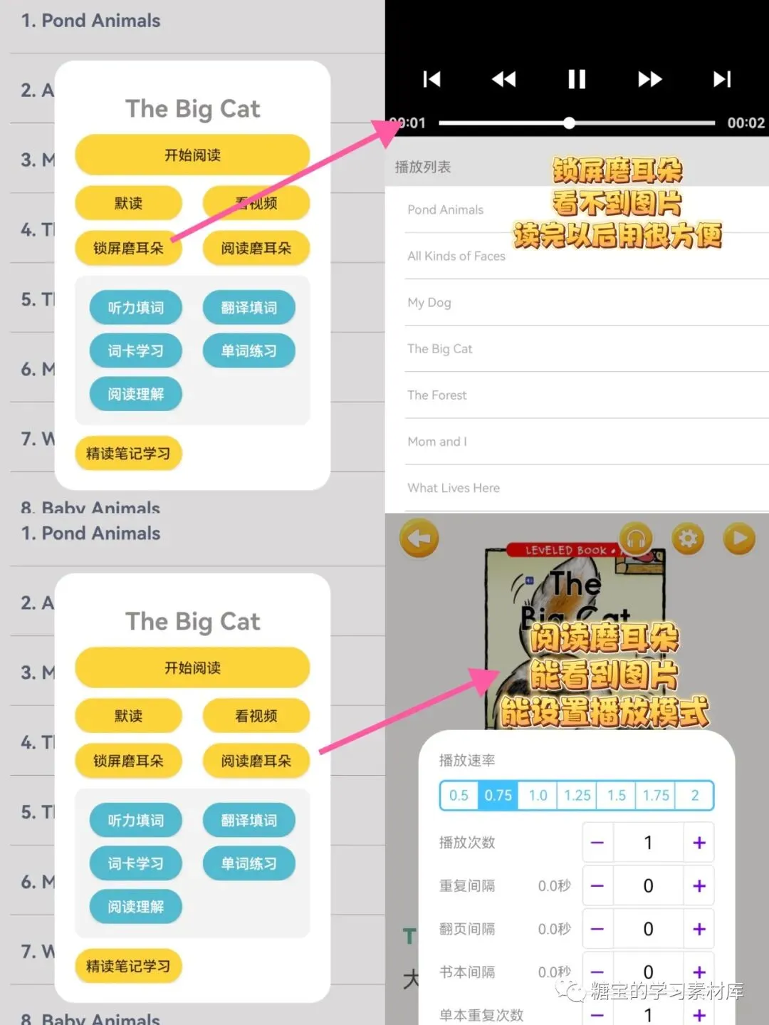 如果你想磨耳朵,没问题。你可以选择“锁屏磨耳朵”模式,沉浸式体验磨耳朵。此外,你还可以选择“阅读磨耳朵”,可以根据你的需求来定。