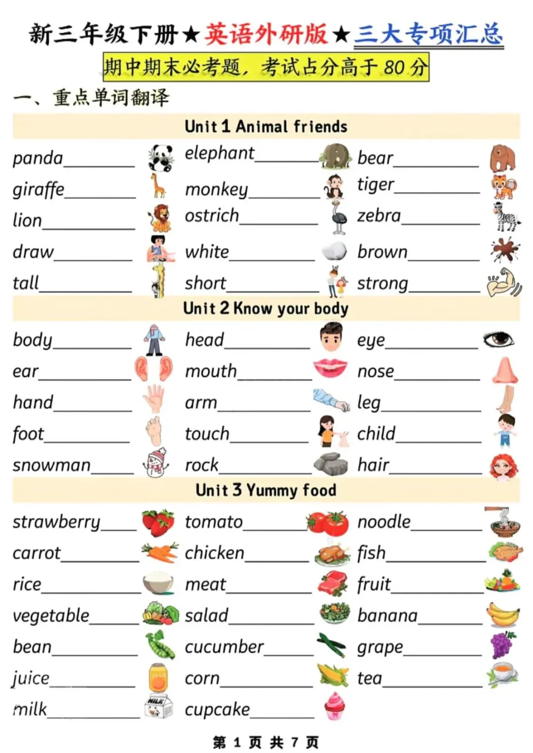 【免费下载】三年级(下)英语 三大专项汇总《外研版(三起)》,PDF电子版,共14页,可打印