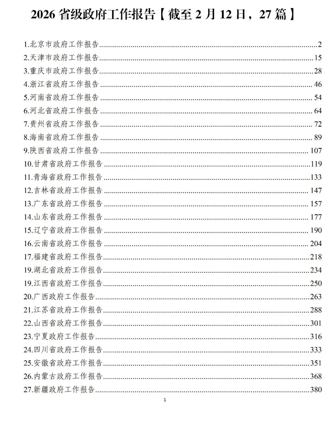 【共176篇、Word版更新27个省份】2026年省、市、县(区)《政府工作报告》每日更新【2月12日,新增7篇】