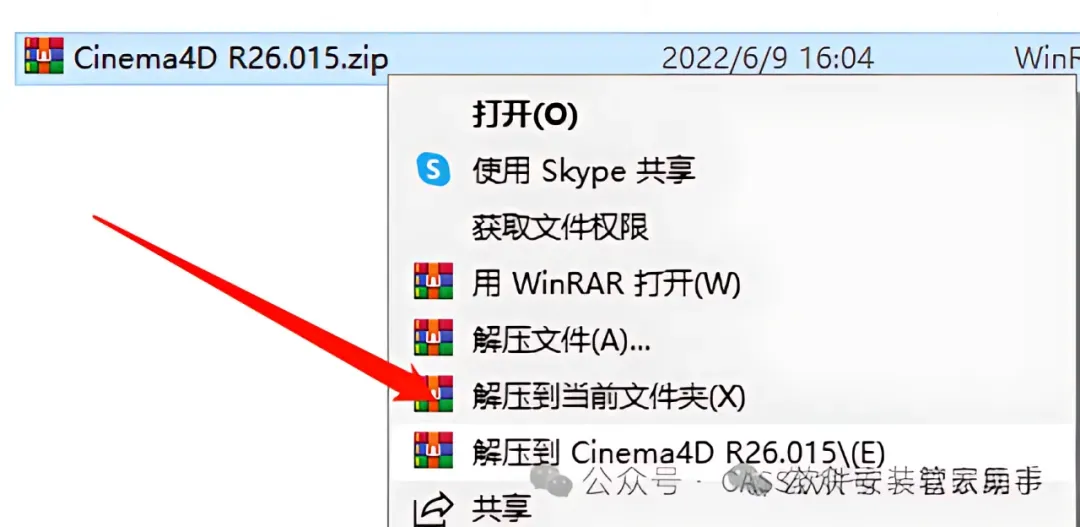 1.下载【C4D R26】文件,右击【解压到C4D R26】文件夹。