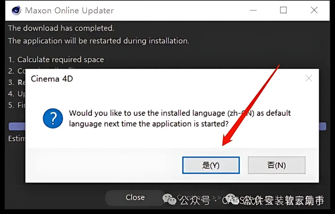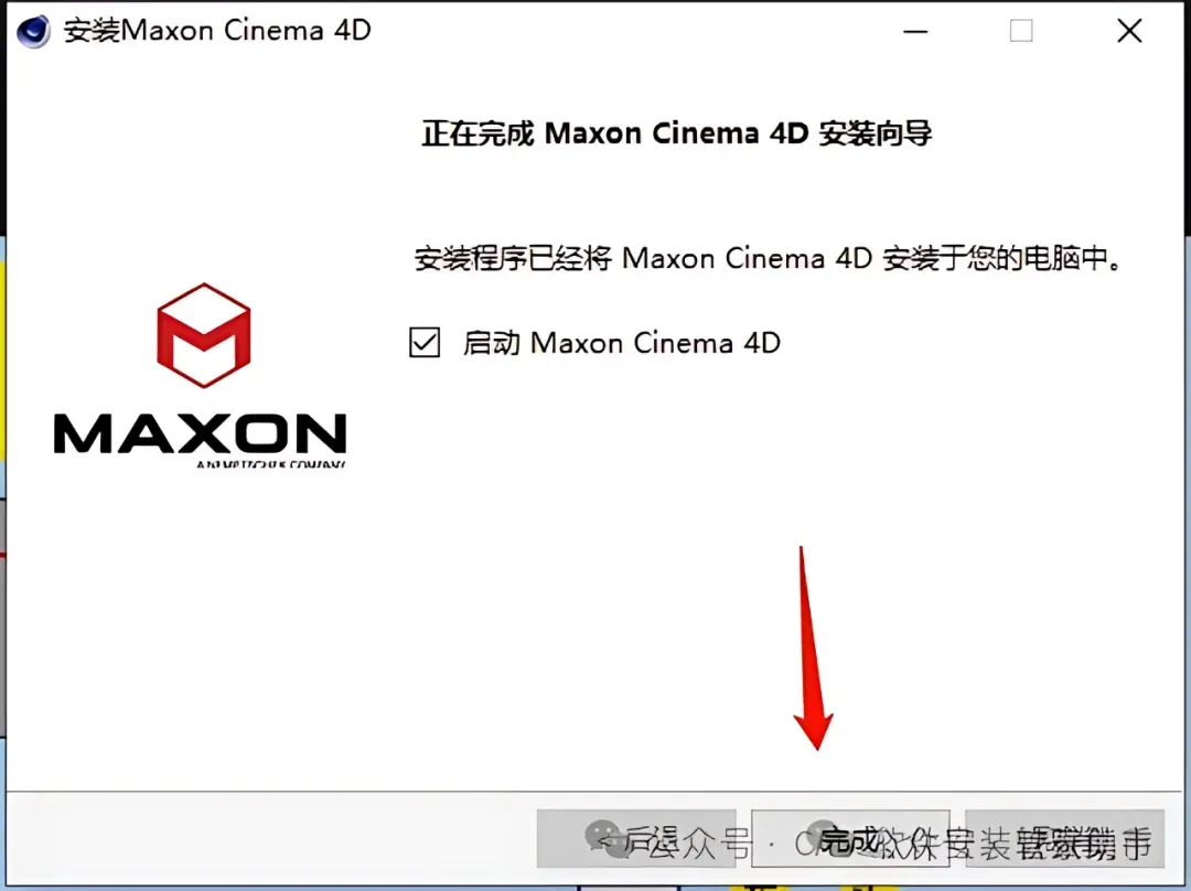 温馨提示:不要取消【启动Maxon Cinema 4D】勾选,让软件启动一次出现第8步窗口关闭即可。
