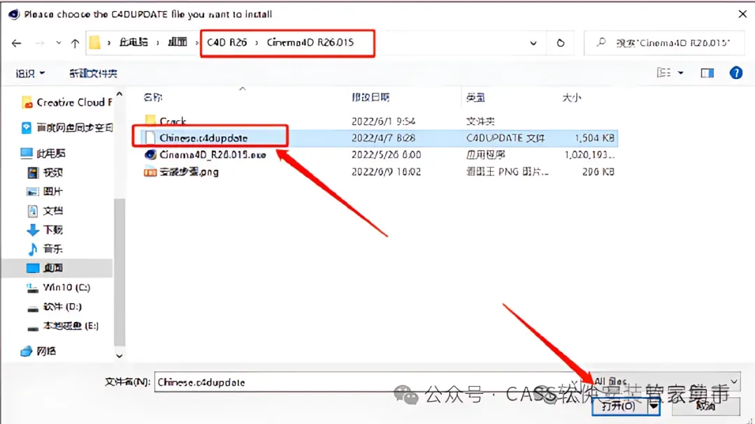 12.选择安装包中【Chinese.c4dupdate】文件,点击打开。