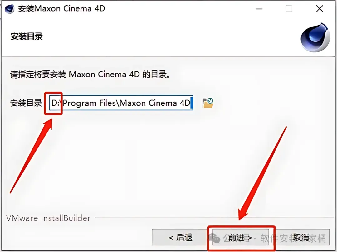 5.软件默认安装路径为系统C盘,更改安装路径,建议安装到除C盘以外的磁盘,设置好安装路径后点击【前进】。