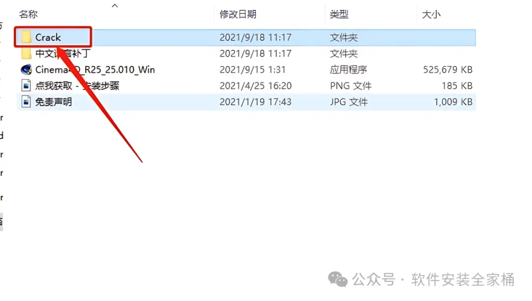10返回到【Cinema 4D R25】文件夹中,打开【Crack】文件夹。
