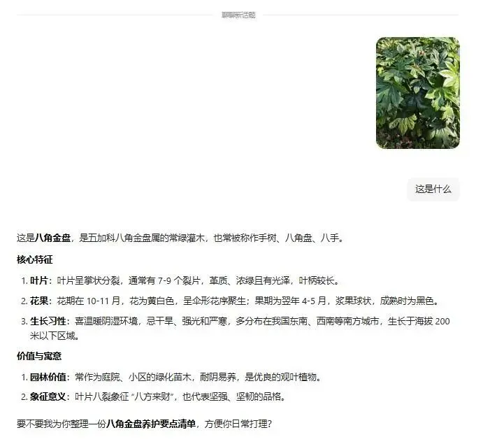 又或者在旅行过程中你偶遇到一些奇奇怪怪的动物或植物,超出了你的知识范围,其实你可以用它快速拍照询问,比如“这是什么植物”“这是什么动物”,就能解决这类烦恼。