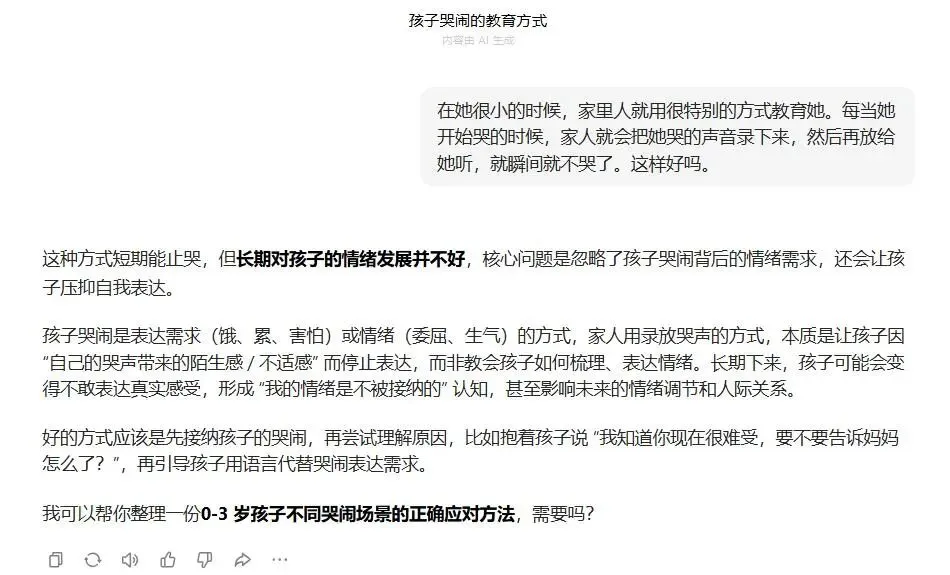 用豆包和娃聊天,顺便就把安全知识教了,原来科学育娃也可以很轻松。跟豆包聊着天,就把交通安全知识给娃科普了,关键是娃还特别买账,比我说的管用多了。看来有时候,换个“老师”效果真的不一样。