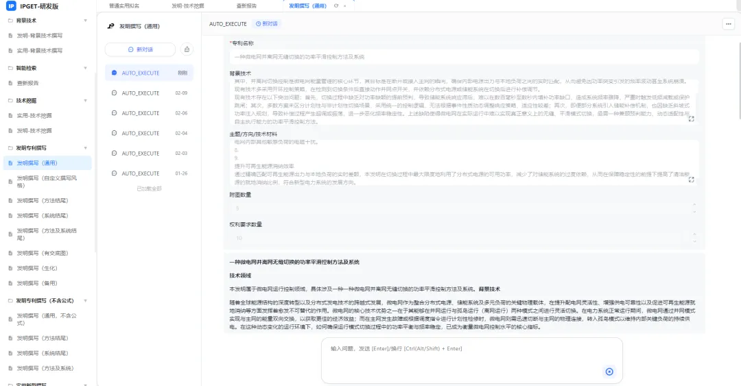 → 比如你交了个“微电网并离网无缝切换的功率”,IPGET找出相关专利。