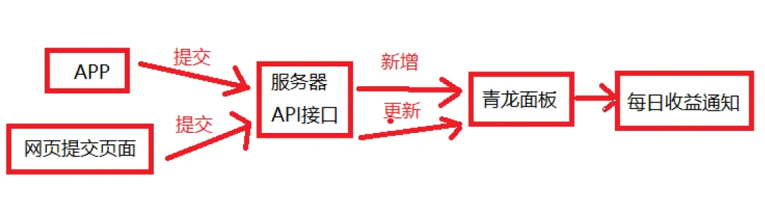 从上面的图可以看出来,API接口处于中间角色,负责接收提交过来的CK,然后将CK转给青龙面板,并通知你有人更新或新增了CK。