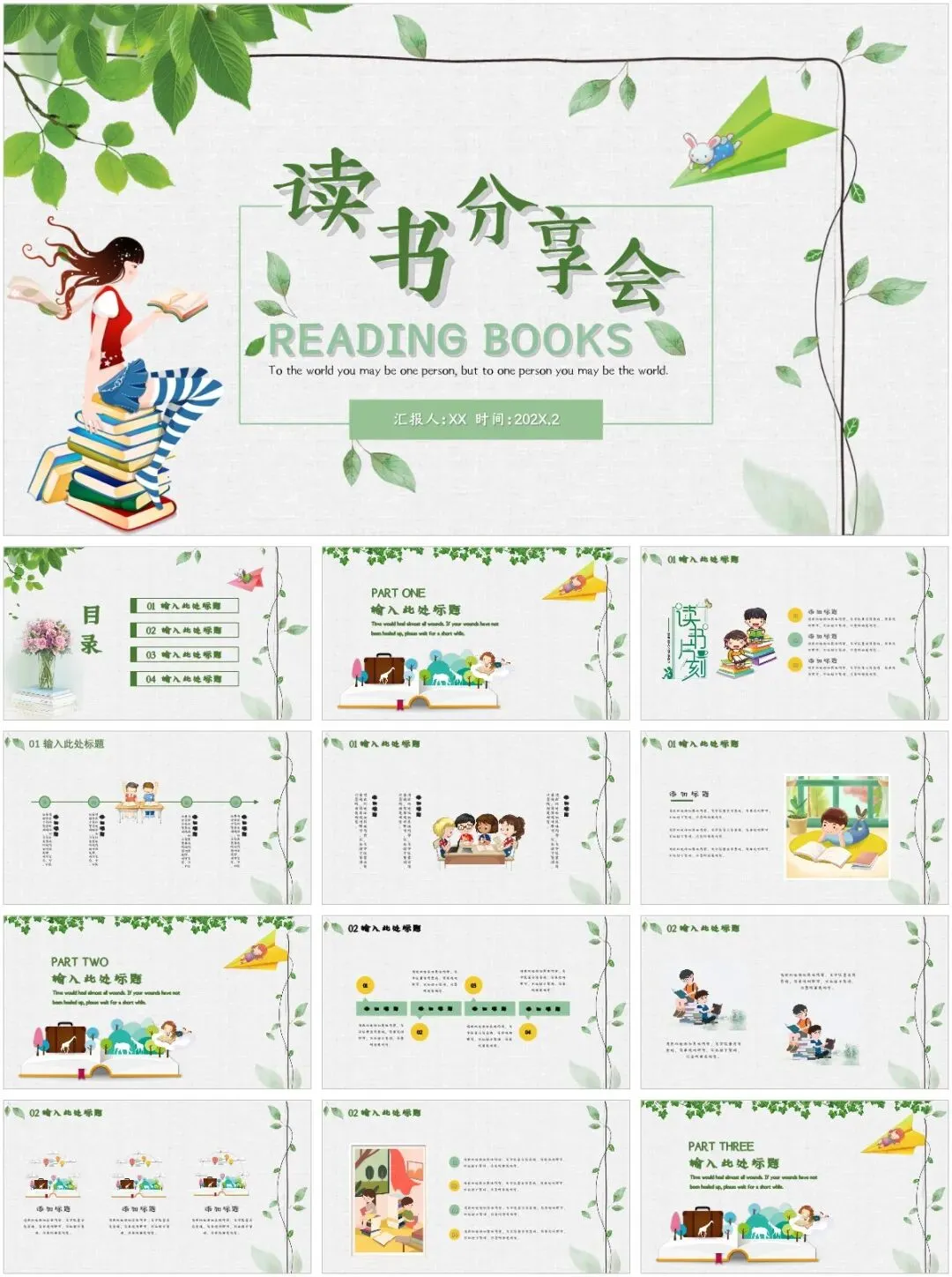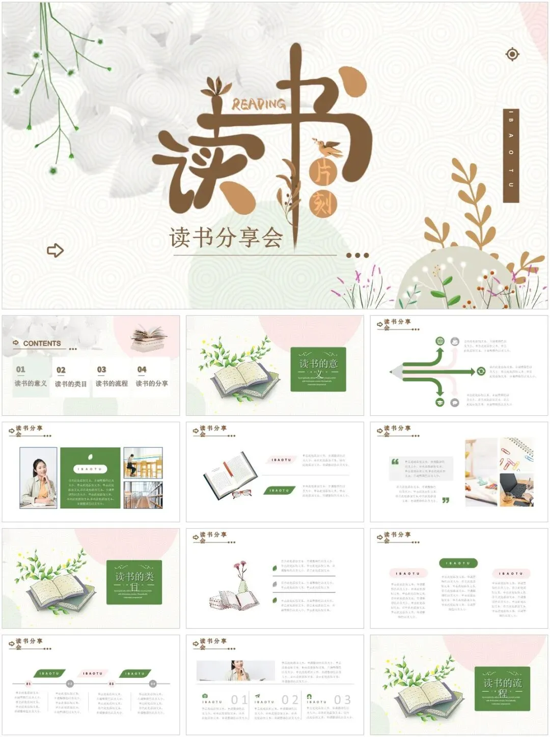 各种风格全都有,简约的、文艺的、清新的、复古的,不管是课堂分享还是线下读书会,直接套内容就完事!不用费脑设计,颜值质感全在线,做读书 PPT 再也不头大!赶紧码住,下次分享直接用!