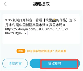 4、将刚才的链接粘贴进来,点击【提取视频】。