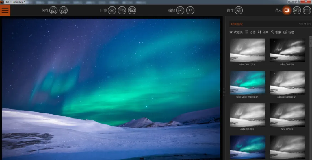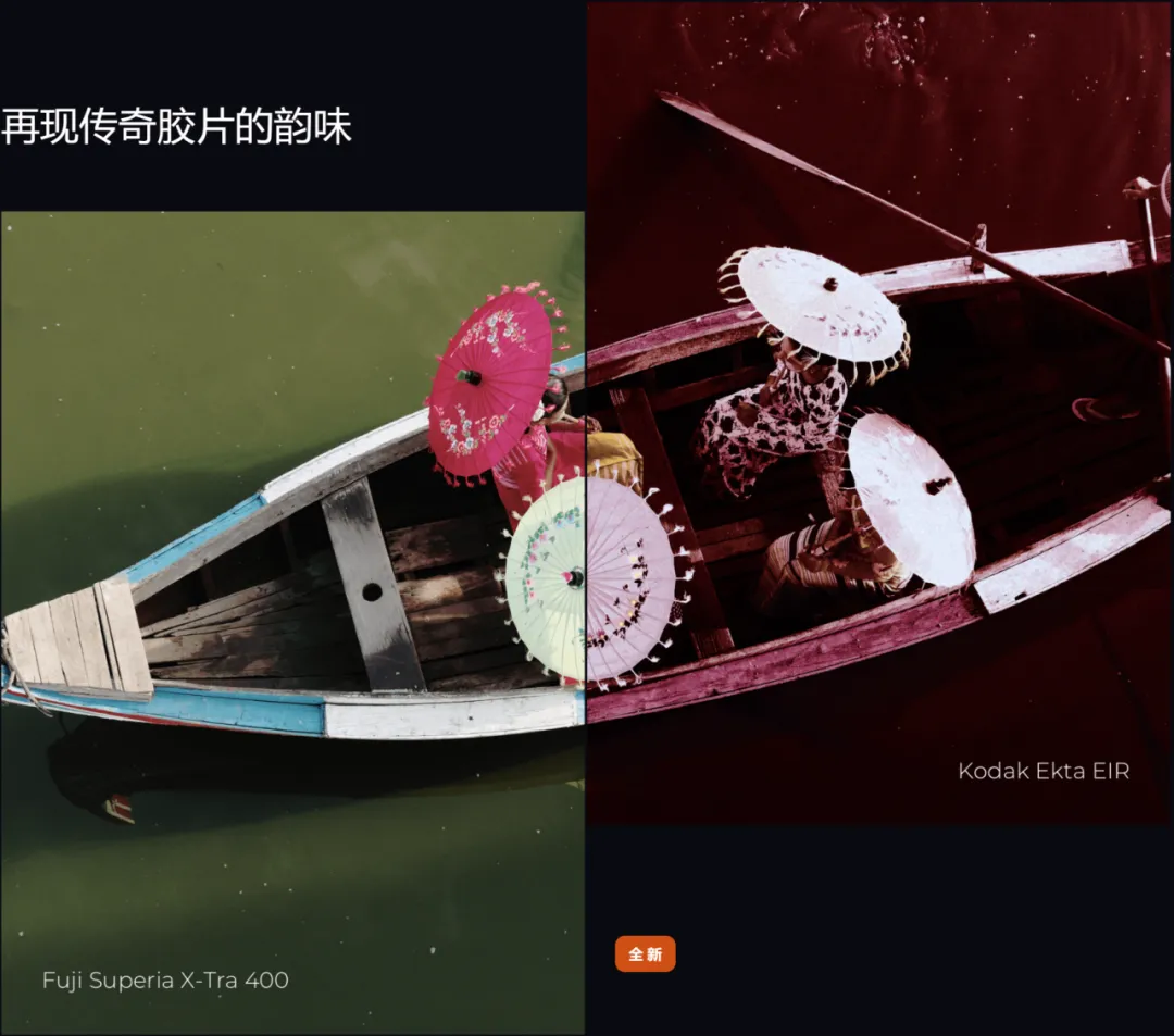 它提供了多种预设,可模仿各种著名胶片,使您的照片呈现出与众不同的色彩。