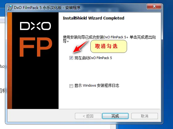 10、取消勾选如下箭头所示选项,然后单击“完成”即可,插件即安装完成;
