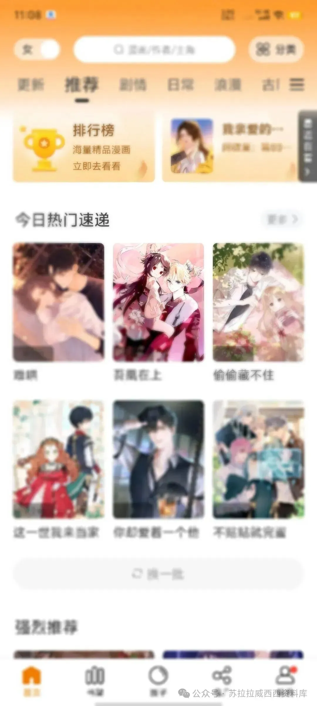 这个主要看国氵曼,想看什么漫直接搜索就可以,别急,女频也有!只要你在左上角切换按钮,男女皆宜