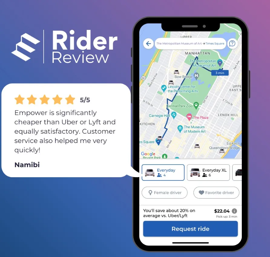 Empower向司机收取每月50美元的固定费用,让司机自行定价并保留100%车资。公司声称,这种模式可为乘客带来更便宜的车费,也能提高司机收入。然而,TLC已设立专页警告市民勿使用该App,称其在纽约市属“非法营运”。