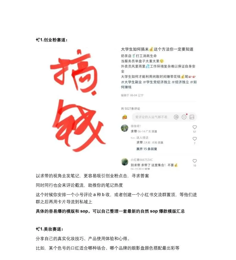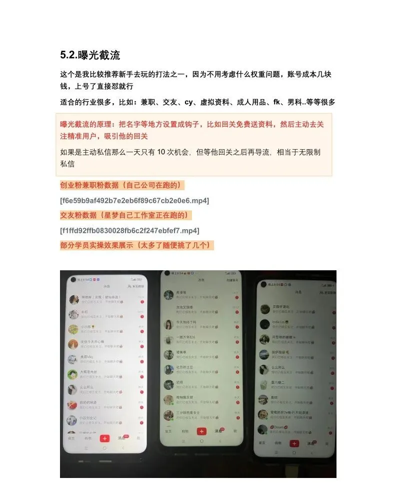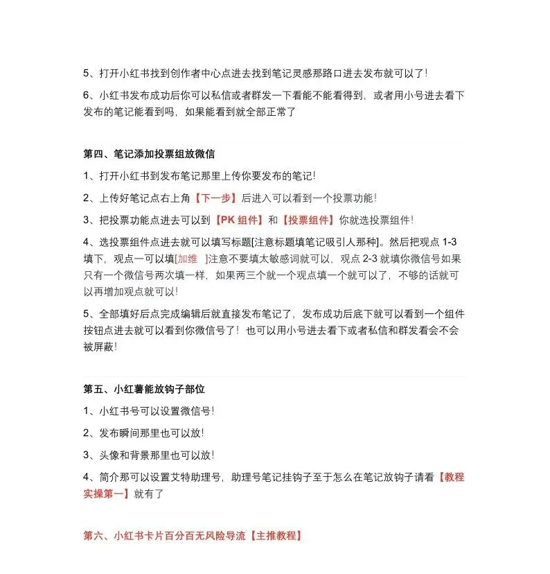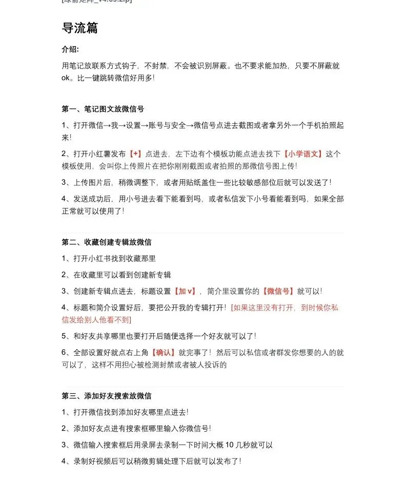 小红书引流手册.pdf 曙光教你玩转新媒体营销(第1091天) 小红书引流手册.pdf 小红书引流涨粉是小红书运营过程中最重要的一环,本手册结合案例分析,从小红书流量逻辑,如何养号,自然流量引流,如何截流,如何导流等几个方面系统讲解。一册在手让您系统掌握学会小红书引流!