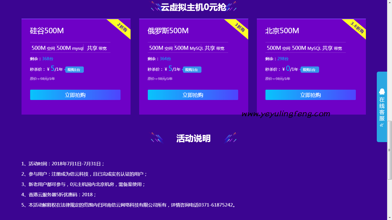 信云科技是老夜从未听说过的老牌主机商,撇开这个不谈,这次活动确实是非常的优惠,不少主机均是以骨折价销售。这里附上官网链接:https://www.3idc.net/