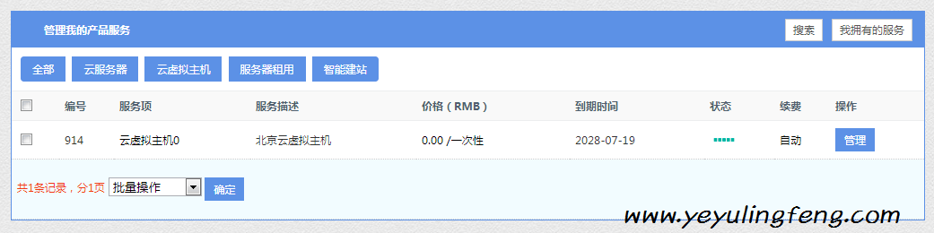 成功领取后,打开用户控制中心找到虚拟主机管理,发现神奇的一幕,主机居然变成了10年期限了,简直是人品爆发。这里不禁疑问了,主机商能坚挺到那个时候么?毕竟跑路的IDC厂老夜见得太多了!心里在犹豫,双手还是不听使唤的捯饬起来了,还真别说,北京机房的虚拟机上传源码还是挺快的!