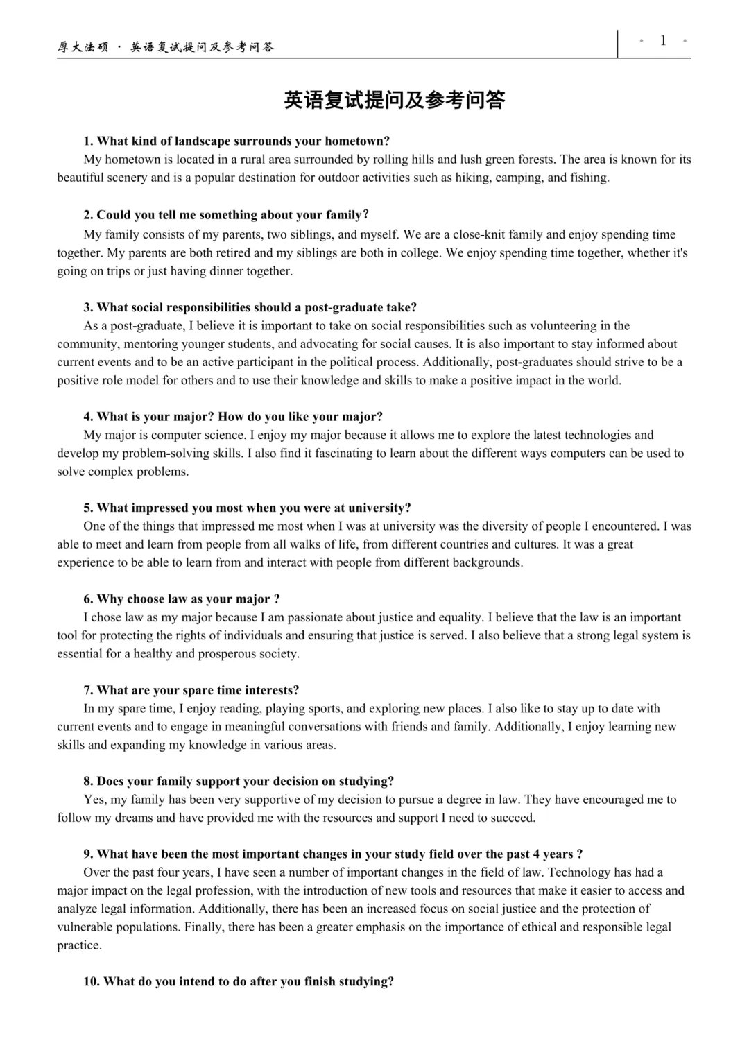60个复试英语常见问答,对常考的复试英语高频问答做了汇总,涉及到部分院校的复试口语题目,参考性高。