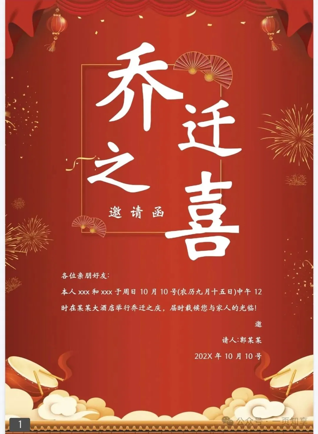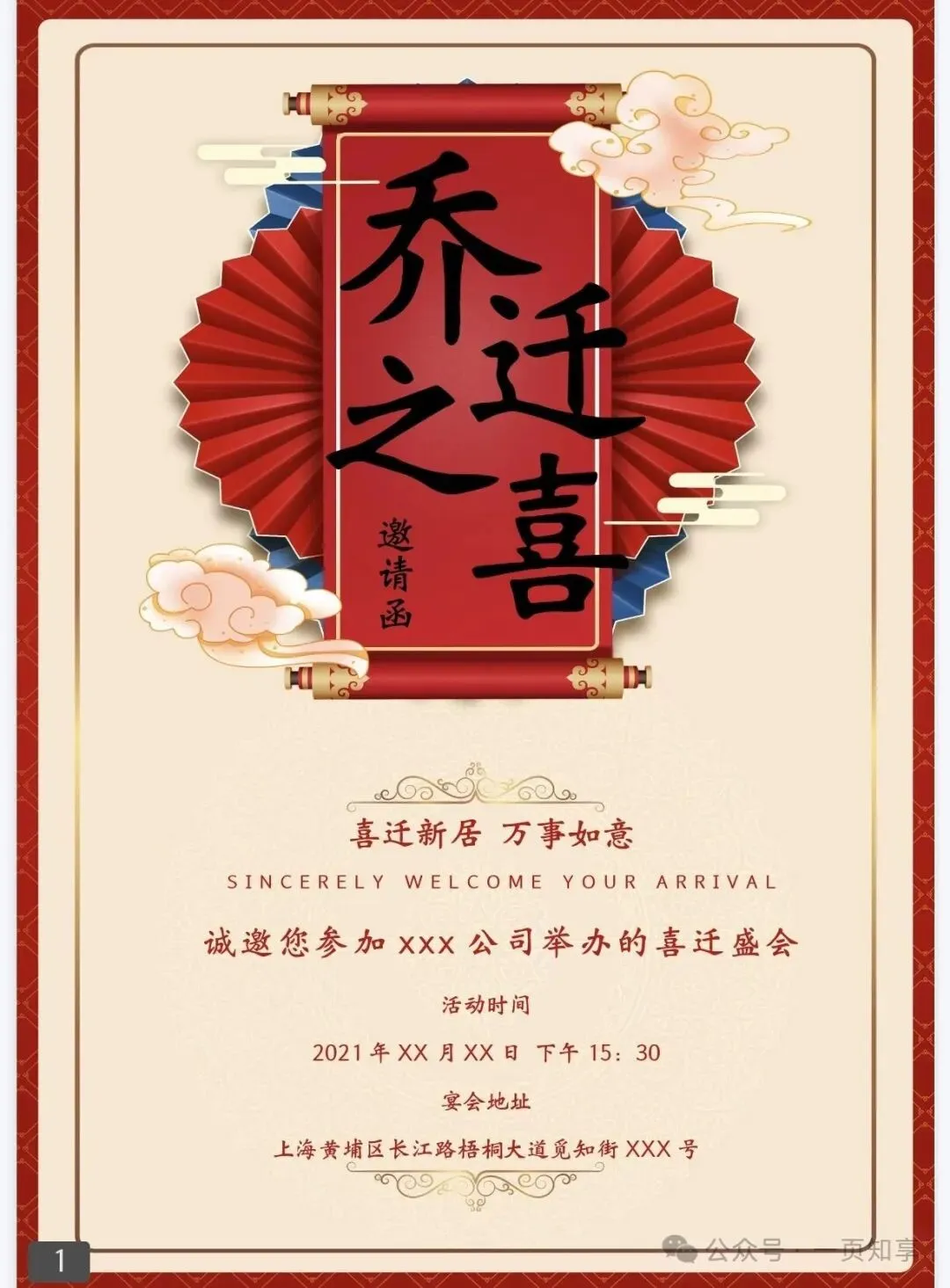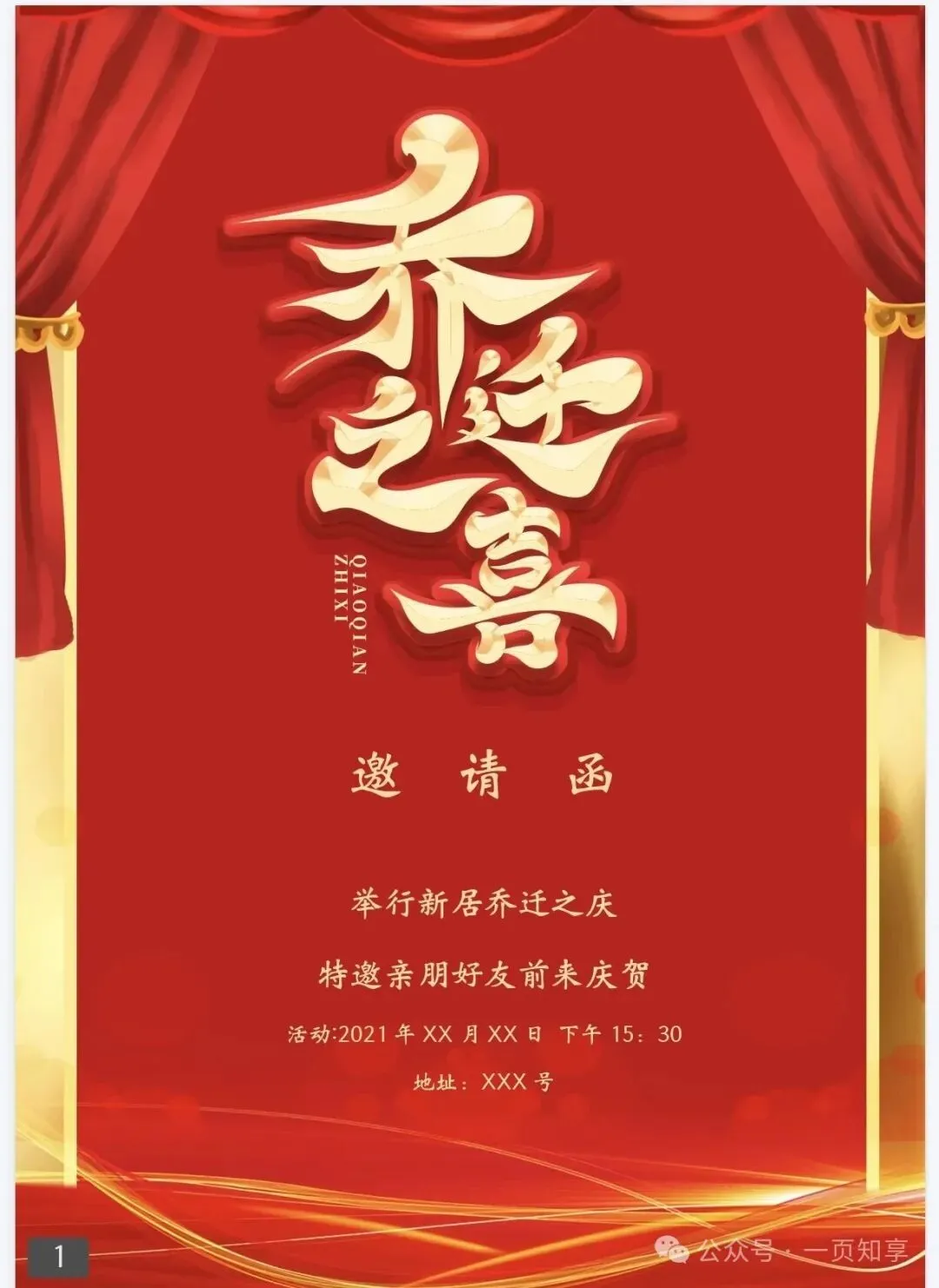 乔迁邀请函电子模板(免费下载保存)