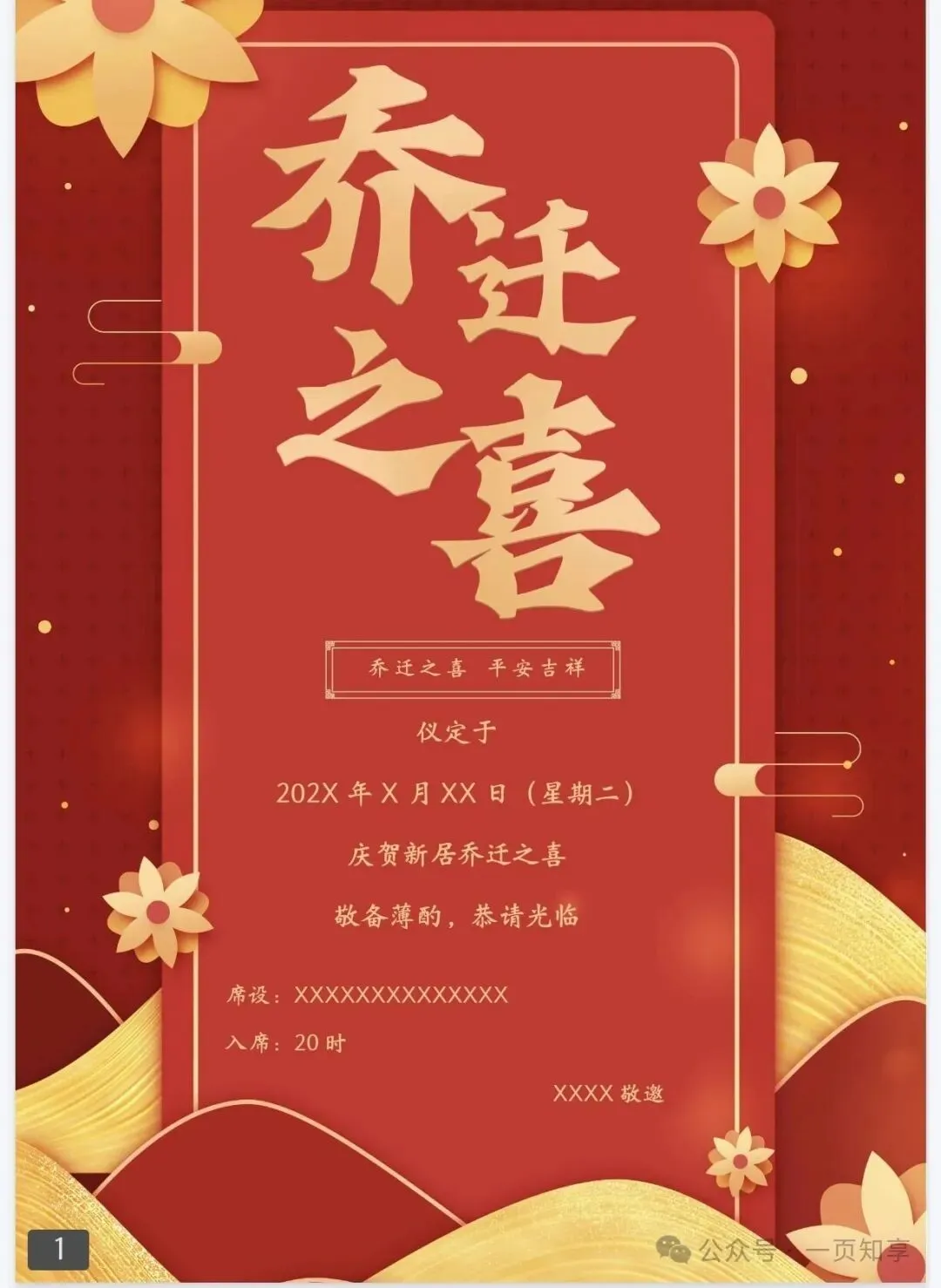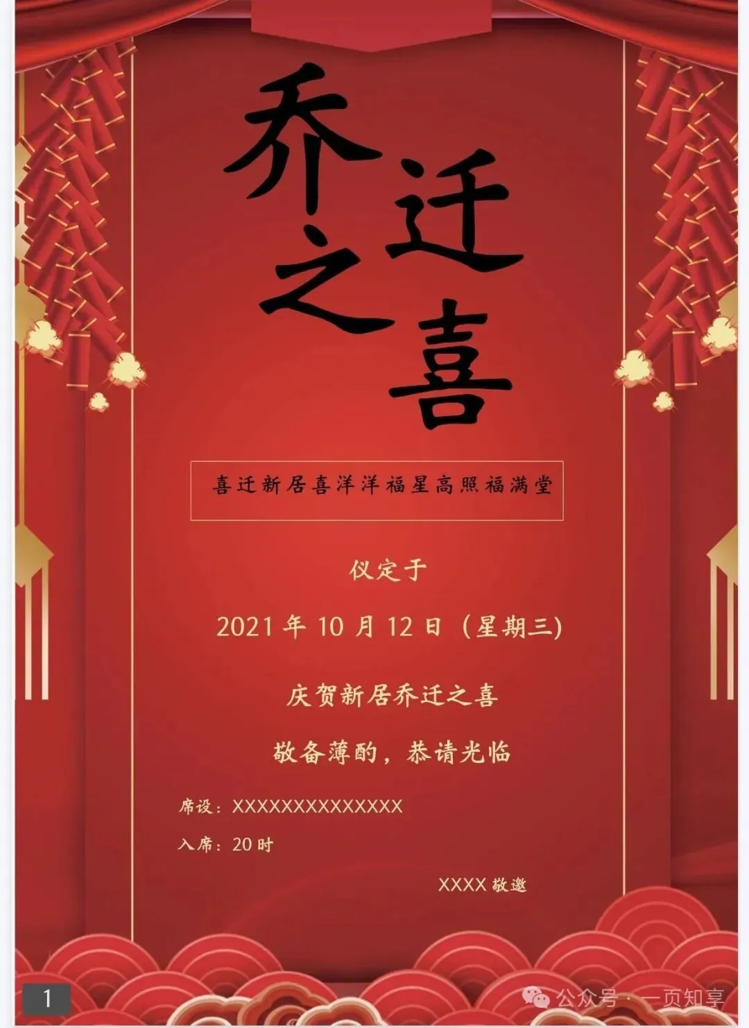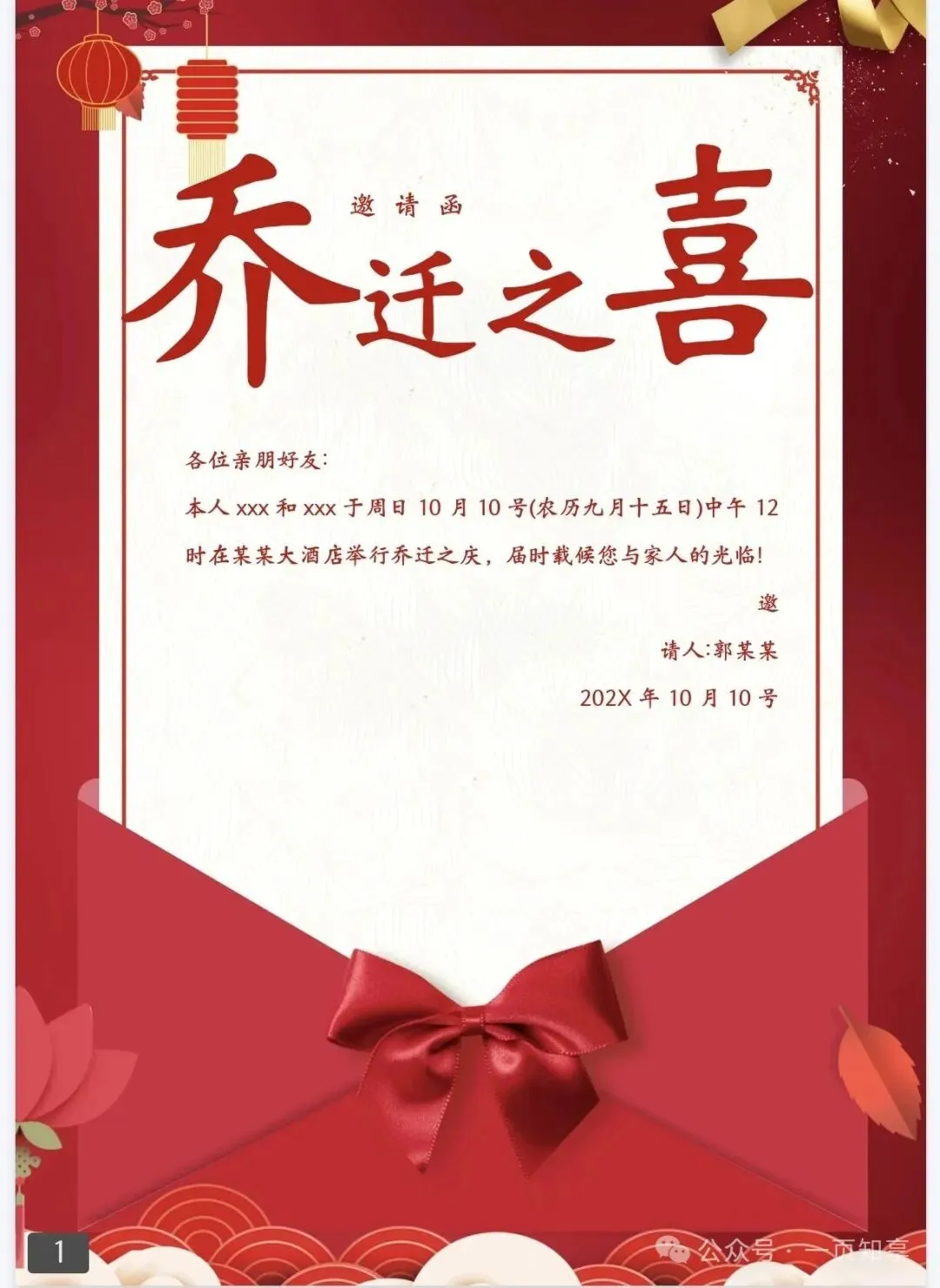 乔迁邀请函电子模板(免费下载保存)