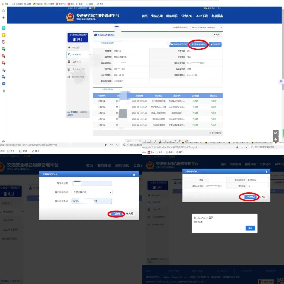 第二步:点击主页“备案机动车”、选择拟绑定车辆进入车辆信息页面,再点击“关联绑定驾驶人”进行车辆及人员信息绑定(也可在驾驶人信息界面点击“关联绑定机动车”实现人车绑定)。
