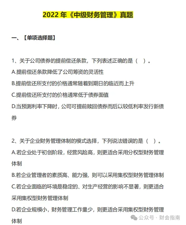 中级会计历年真题及答案解析pdf电子版,免费下载!中级会计复习历年真题的重要性,小南就不多说了,直接给各位备考的同学整理了这套中级会计历年真题卷及答案解析,大家需要参考复习的,直接打印做题就可以了。中级会计考试的难度有的,希望准备报考2026年中级会计考试的同学,都要认真复习,不要临时抱佛脚,这样胜算的几率是很低的。