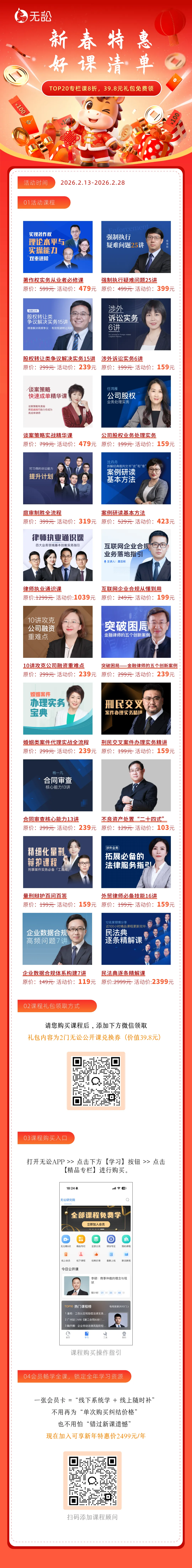 值此新春佳节,无讼APP为法律人送上重磅福利 —— 最受欢迎的20门线上专栏课新春特惠活动热力开启!
