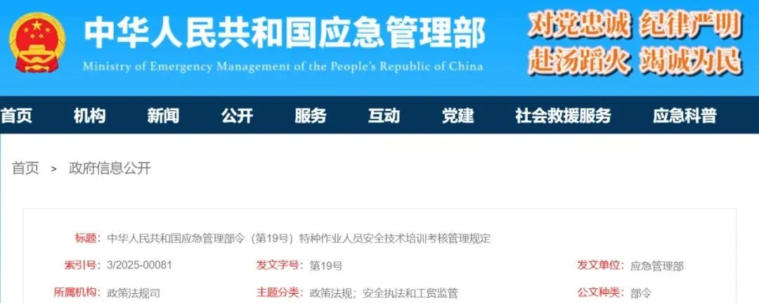 《特种作业人员安全技术培训考核管理规定》已经2025年12月12日应急管理部第31次部务会议修订通过,现予公布,自2026年6月1日起施行。