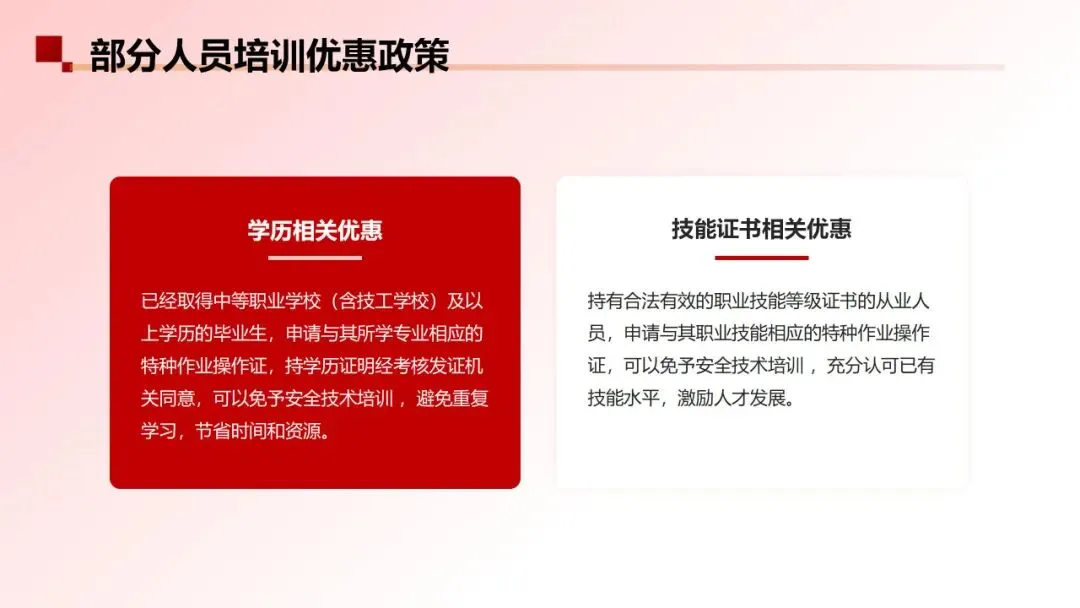 明确规定持有合法有效的职业技能等级证书的从业人员,申请与其职业技能相应的特种作业操作证,可以免予安全技术培训。