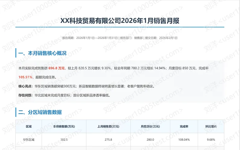 =A2&”,您好!附件是2026年1月的销售报表,请查收。如有疑问请联系报表中心李林。(Tel:65485530)。“