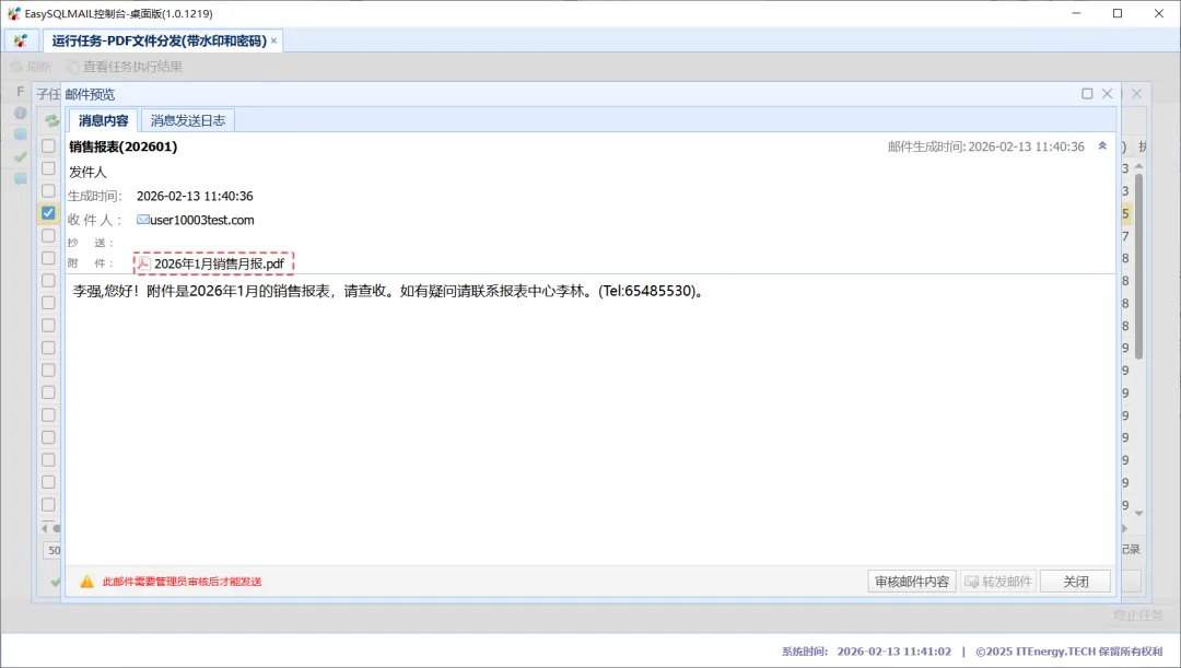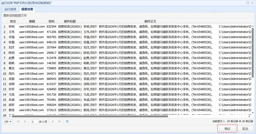 2.4 检查清单内容是否正确,然后点击“确定”。系统会运行这个任务,为每个文件生成一个邮件。