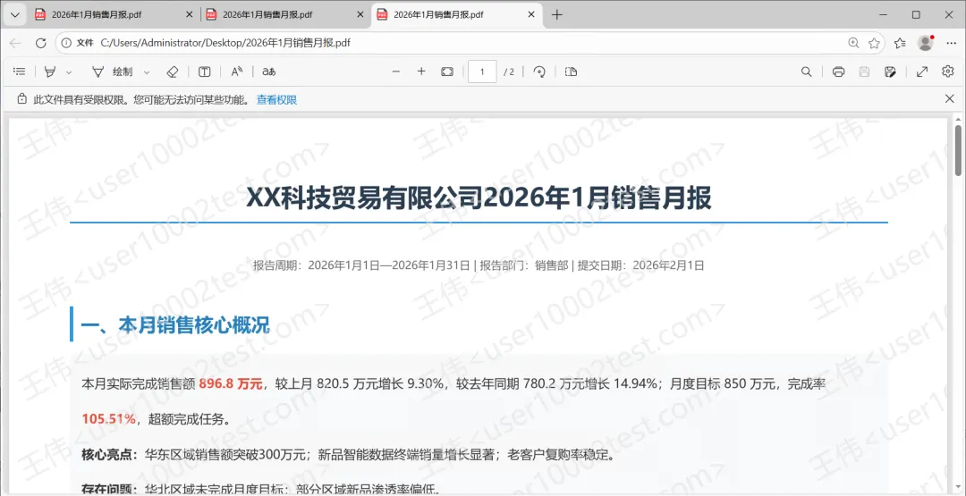 系统为文档添加了水印