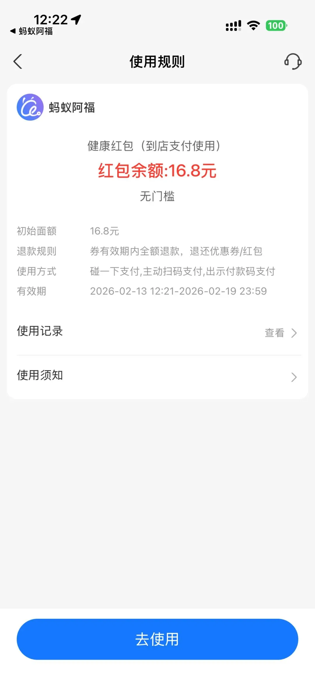 下载蚂蚁阿福app可以得16.8元到店支付红包🧧