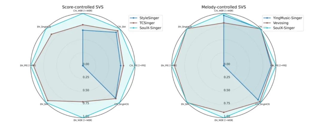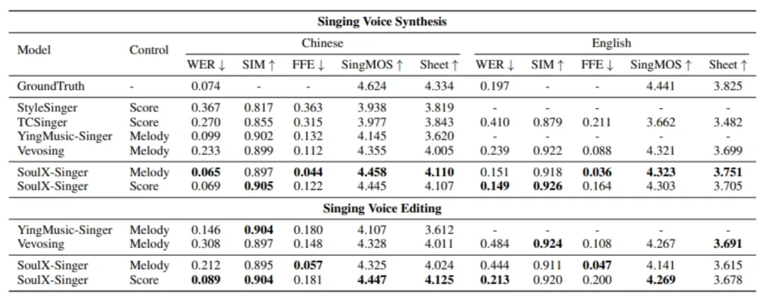 实验结果表明,SoulX-Singer 在语义清晰度、歌手相似度、基频一致性以及整体合成质量等多个维度上均显著优于此前的相关工作;在主观听感评测中,其表现同样取得了明显领先优势。