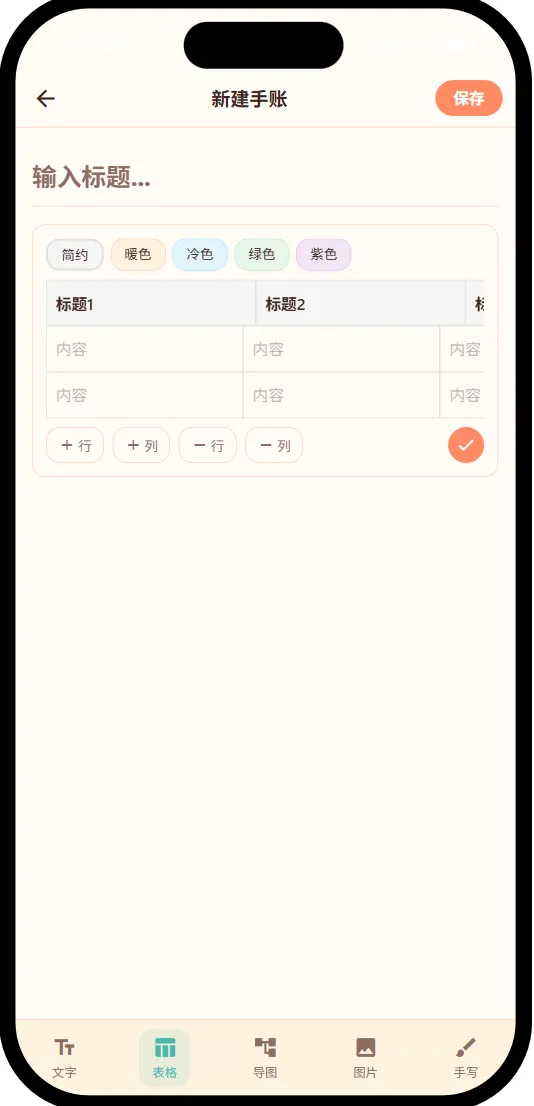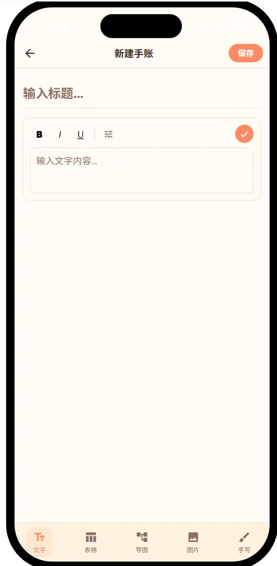 点开右下方 ➕,有五种随手记形式,分别是文字、表格、思维导图、图片及手写,每种形式又各有自己的特色