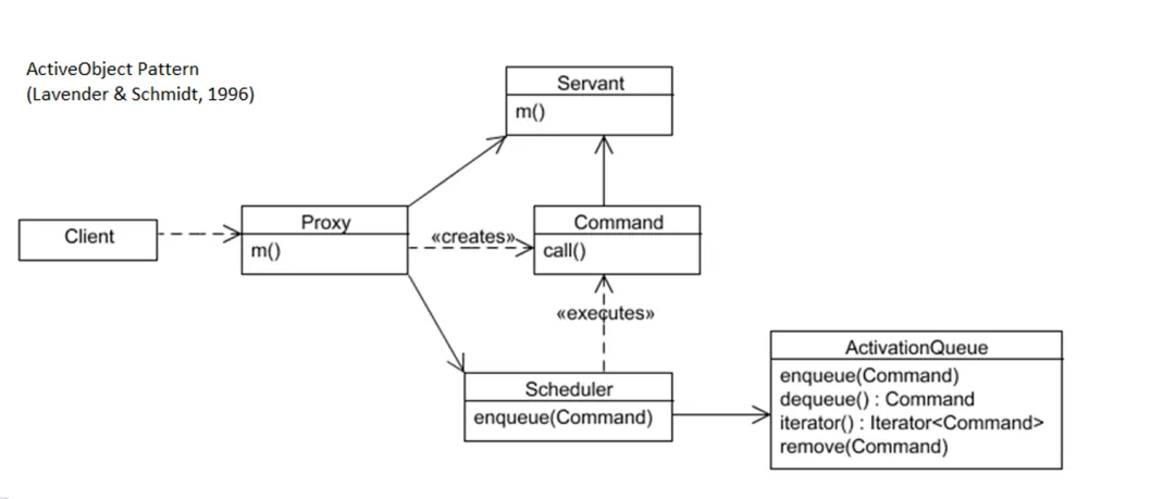 该模式通过将方法调用封装为命令对象,并交给专用线程排队执行,实现了调用与执行的分离,从而简化多线程编程,避免显式锁同步。