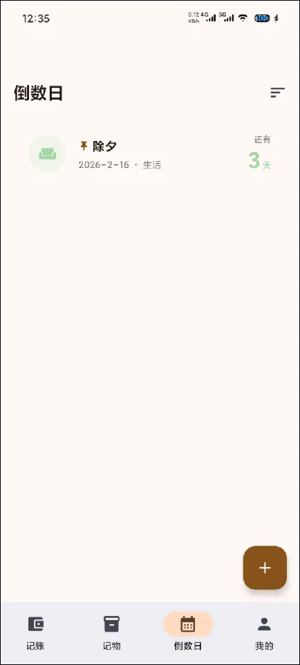 除了核心的记账功能,它还贴心地集成了倒数日模块,记录你的重要物品、保修卡、会员卡等,设置重要日子的倒计时,帮你管理生活的方方面面: