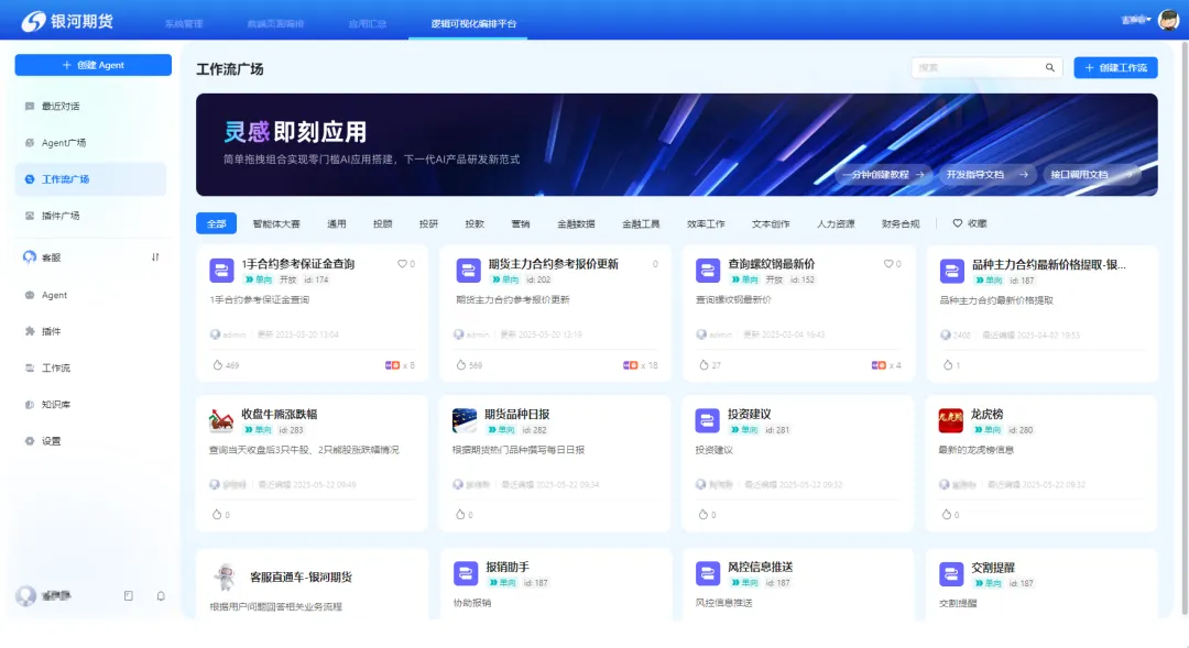 以银河期货为例,基于双方技术积累与行业洞察,共同打造了“银河期货智能体平台”。该平台深度融合AI技术与金融场景,已经打造员工助手、展业助手、客服直通车、资讯订阅等agent及工作流,通过多维度智能工具给员工赋能,助力银河期货实现效率跃升与服务提升。