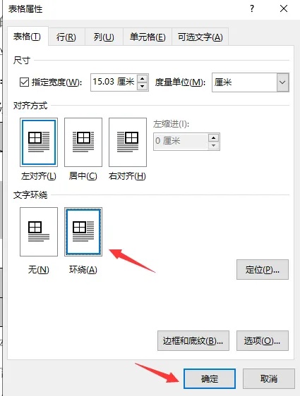 在这里,选择“环绕”模式,设置完成后,你会发现表格周围的文字自动环绕在表格四周,如同图片一般。