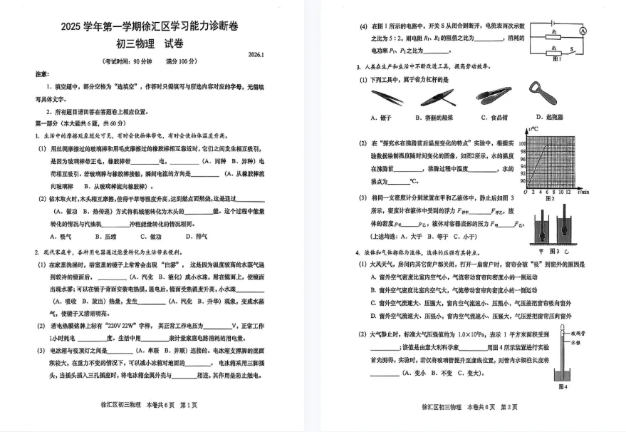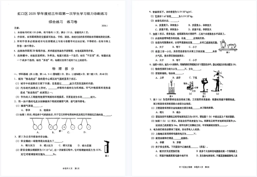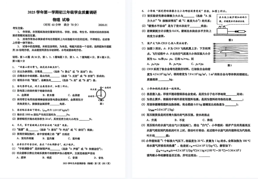 【PDF可下载】2026上海16区初三一模物理试卷+答案分享!