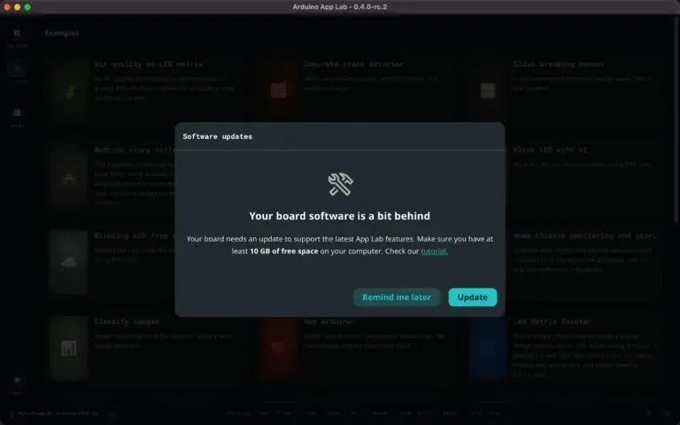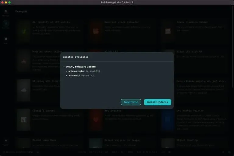 Arduino App Lab 现在允许用户跳过 Arduino App Lab 和板载软件更新。虽然我们建议始终保持最新状态,以尽快获得新功能和修复程序,但此功能对于在演示或生产部署分析等时间敏感情况下的人特别有用。