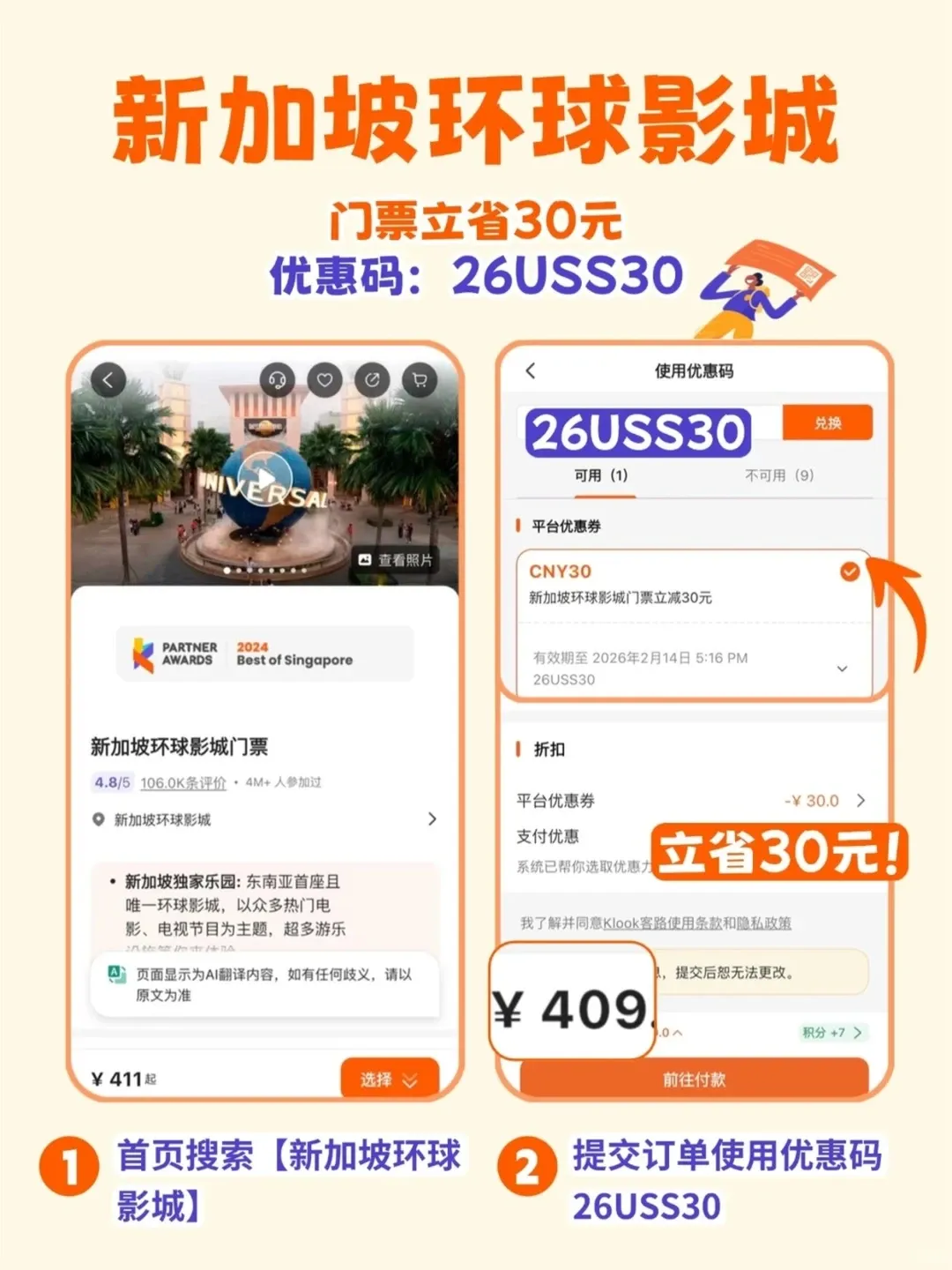 (👉打开Klook,搜「请叫我新加坡旅行主理人」,下滑到“快闪优惠”就能找到)