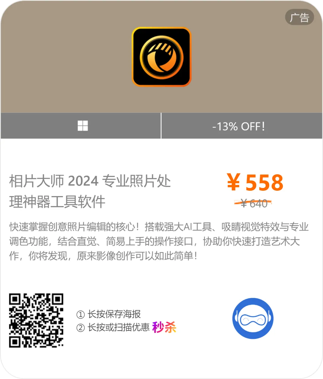 相片大师是一款结合了 AI 智能技术的专业照片编辑软件,适用于 Windows系统。立即下载并体验相片大师的强大功能,让您的照片焕发新生!