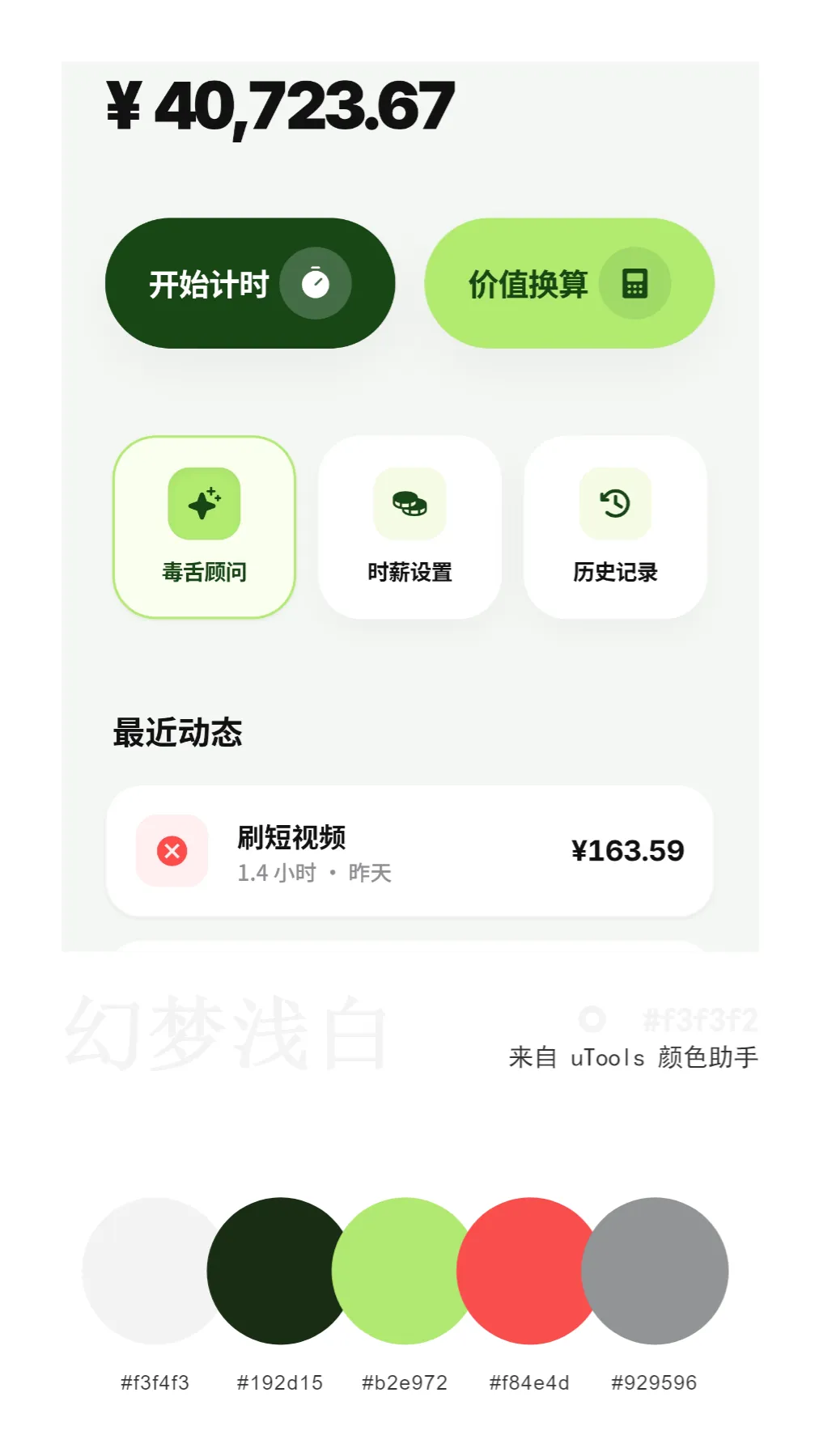 产品理念:基于行为经济学和损失厌恶心理学,将时间实时转化为金钱数字,帮助用户减少无效时间投入。