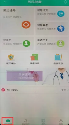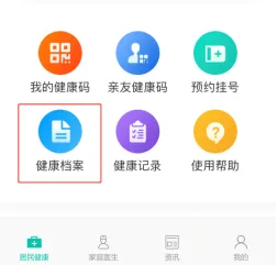 (1)在“居民健康”界面,点击“健康档案”,如图19所示。